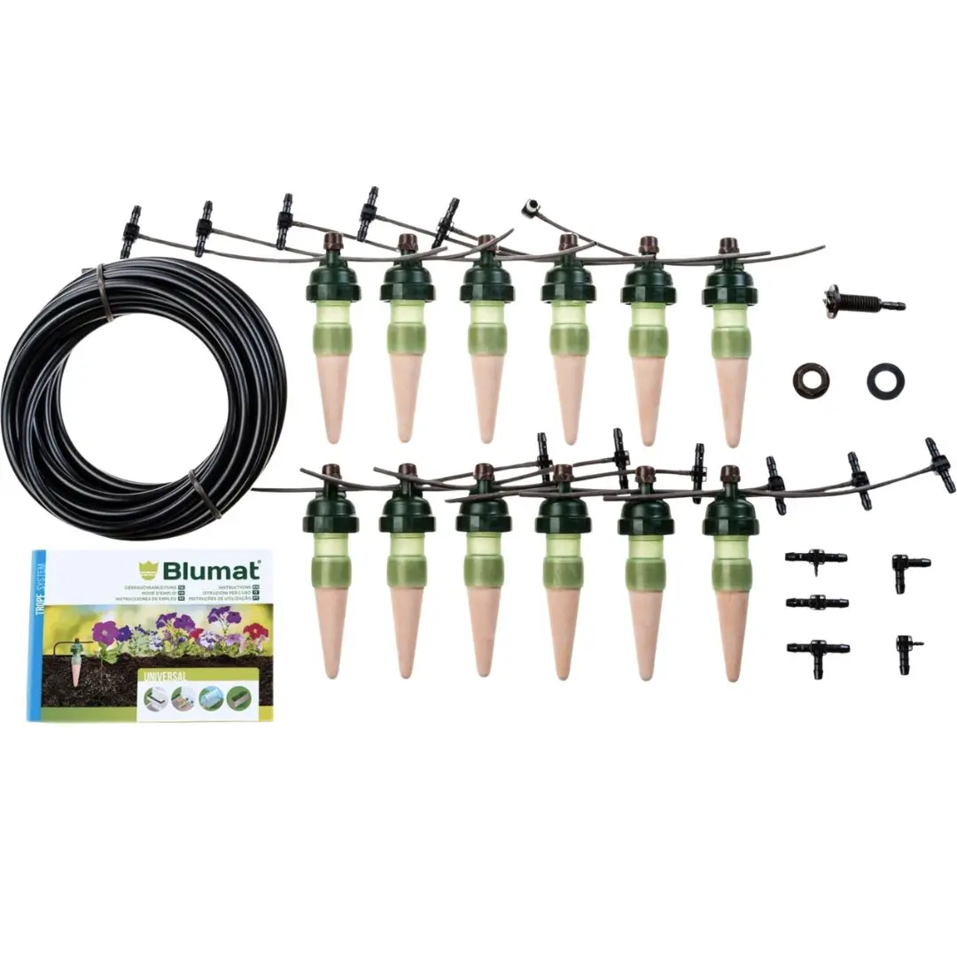 Egal, ob du Kräuter, Gemüse oder Blumen ziehst – der Tropf-Blumat passt sich deinem Setup an. Das Basisset versorgt bis zu 12 Pflanzen, kann aber über das modulare Zubehör auf bis zu 500 Pflanzen erweitert werden. So wächst dein System einfach mit deinem Garten mit.