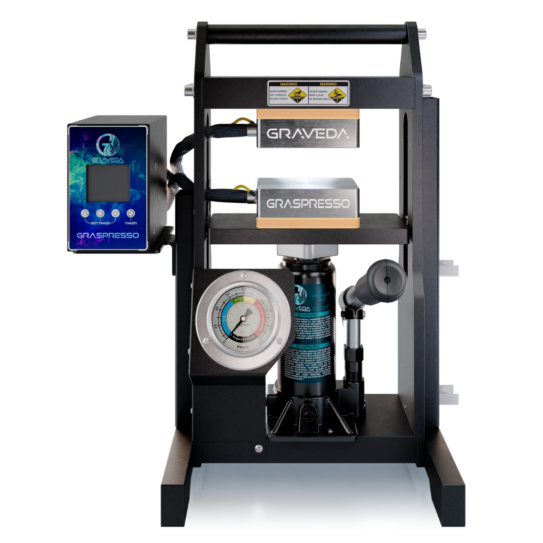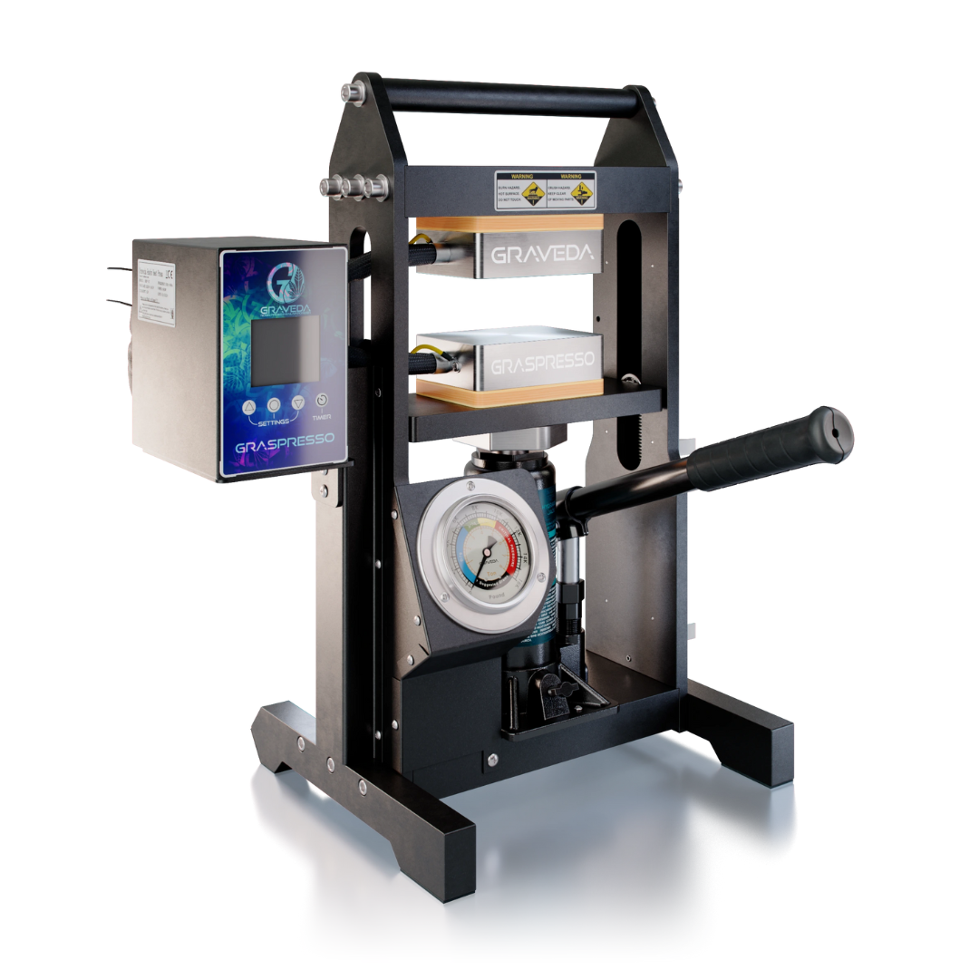 Die Graveda Graspresso HRP-5T bietet Profi-Features in einem kompakten, leicht zu handhabenden Format. Ideal für alle, die sauberes, terp-reiches Rosin mit präziser Kontrolle und zuverlässiger Technik herstellen möchten.