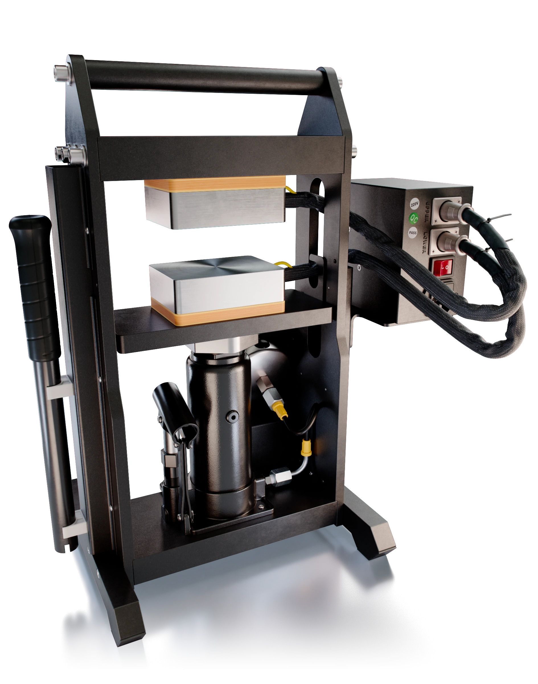 Die HRP-5T liefert echte 5 Tonnen Presskraft über einen robusten Hydraulikzylinder. Das reicht locker, um auch fest gepackte Micron-Bags bei niedriger Temperatur effizient zu extrahieren – perfekt für Terpenerhalt und sauberes, aromatisches Rosin.