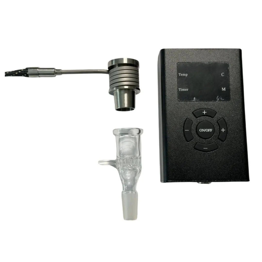 Mit Titan Head, 4 mm Terppearls und Glas-Quarz-Kammer bietet er echte Profi-Performance für Kräuter oder Konzentrate.