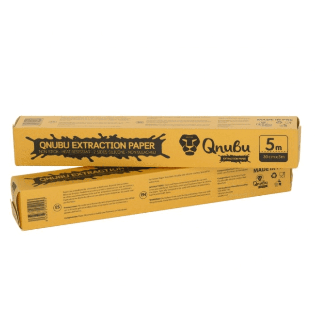 Qnubu Extraktionspapier ist doppelt silikonbeschichtet, hitzebeständig und lebensmittelecht – ideal für saubere Rosin Tech Extraktionen ohne Ankleben.